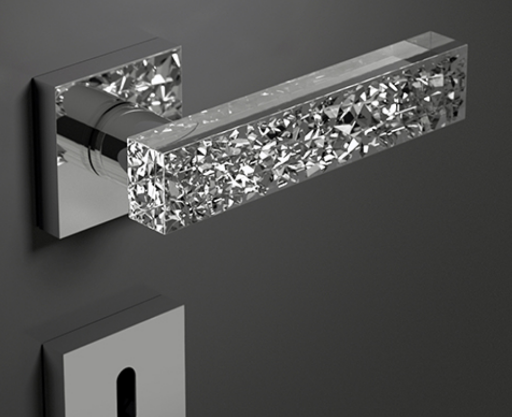 Drückergarnitur KYMI ICE aus Bleikristallglas mit 24% Pb und quadratischen Drückerrosetten 52 x 52 x 11 mm. Mit Buntbart BB / Profilzylinder PZ oder WC/Bad Rosetten. Die Auswahl treffen Sie bitte im pulldownmenu. Bitte tragen Sie unter Bemerkungen ein welches Finish die Rosetten haben sollen: Chrom poliert MPC Messing poliert MP matt verchromt MMC matt schwarz SM Folgende Oberflächen sind lieferbar (andere Varianten auf Anfrage) Bleikristall: klar und Chrom poliert BK-K-44-MPC klar und Messing poliert BK-K-44-MP klar und matt verchromt BK-K-44-MMC klar und schwarz matte Rosetten BK-K-44-SM klar/schwarz und Chrom poliert BK-KS-44-MPC klar/schwarz und Messing poliert BK-KS-44-MP klar/schwarz und matt verchromt BK-KS-44-MMC klar/schwarz und schwarz matte Rosetten BK-KS-44-SM Die Abmessungen entnehmen Sie bitte der PDF Datei. Bitte stellen Sie alle Fragen vor der Bestellung, da es sich um Sonderanfertigungen handelt sind Rücknahme oder Umtausch ausgeschlossen. Diese Beschläge werden extra für Sie nach Beauftragung gefertigt. Die Lieferzeit kann da auch schon einmal länger als angegeben sein. Wir informieren Sie aber schnellstmöglich nach Eingang der Bestellung über die Liefertermine. Mail bitte an: nb@beschlaege-aus-hamburg.de