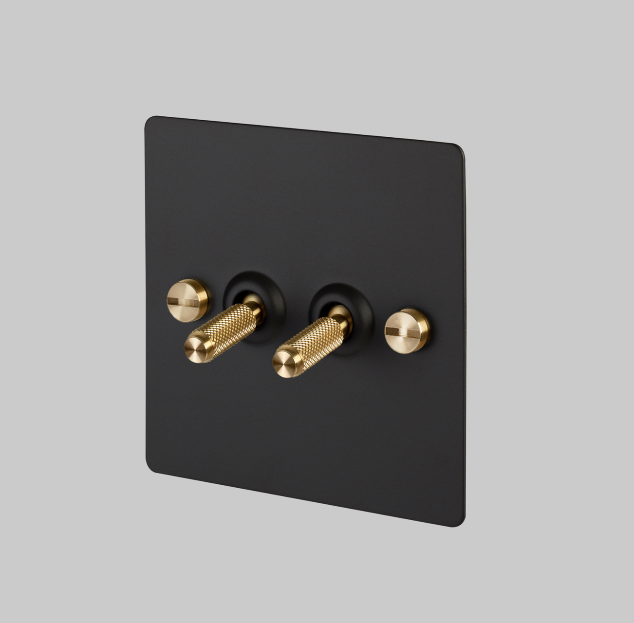 Buster + Punch Original Lichtschalter 2G schwarz/schwarzer Kipphebel, Edelstahl oder Messing Kipphebel