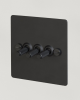 Buster + Punch Original „3er“ Lichtschalter 88 x 88 mm mit Metall Einbaukasten 70 x 70 x 47 mm. Auf Wunsch können Sie den „Hebel“ und die Schrauben auch in anderen Farben bekommen. Senden Sie uns bitte dazu bitte eine Mail mit Ihrer Anfrage und der benötigten Stückzahl. Einbaumaße und Anleitungen sehen und finden Sie in den PDF im Anhang.
