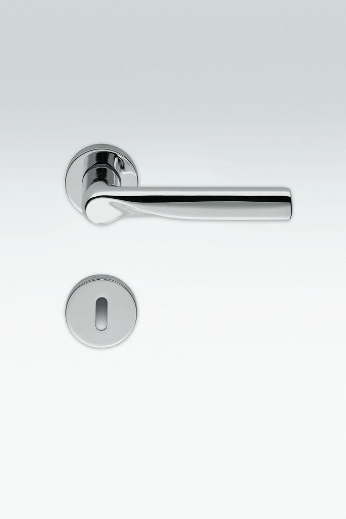 CD-Drücker-Rosetten-Garnitur in Chrom poliert oder Messing poliert lackiert Design: Studio KAIROS Rosetten: 50 x 10 mm Drücker: ca. 125 mm Lieferbar als Buntbart, Profilzylinder oder WC-Bad-Garnitur. Im Lieferumfang ist das komplette Befestigungsmaterial inklusive aller Schrauben usw. enthalten. Eine Bohrschablone liegt bei. Bitte treffen Sie Ihre Auswahl im pulldownmenu