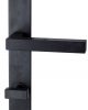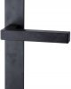 HALCÖ Drückerlangschildgarnitur ISCHGL mit Buntbart-,PZ- oder WC/Bad Lochung Das Photo zeigt ein Schild ohne Lochung. Gearbeitet aus schwarzSTAHL. Wählen Sie im pulldownmenu Ihre gewünschte Lochung aus. Die gewünschte Anzahl Ihrer Garnituren können Sie oben rechts im Warenkorb einstellen. Der Drücker hat eine 25 mm hohe rechteckige Handhabe und ist insgesamt 125 x 18 mm lang. Die Schilder sind 38 x 237 mm. Im Lieferumfang (komplett für eine Tür – 1 Paar Drücker und 1 Paar Schilder) befinden sich außerdem der 8 x 8 mm Vierkant für Türstärken von 38 bis 45 mm, ein Sechskantschlüssel sowie die passenden Linsensenkkopf-Holzschrauben mit Schlitz.
