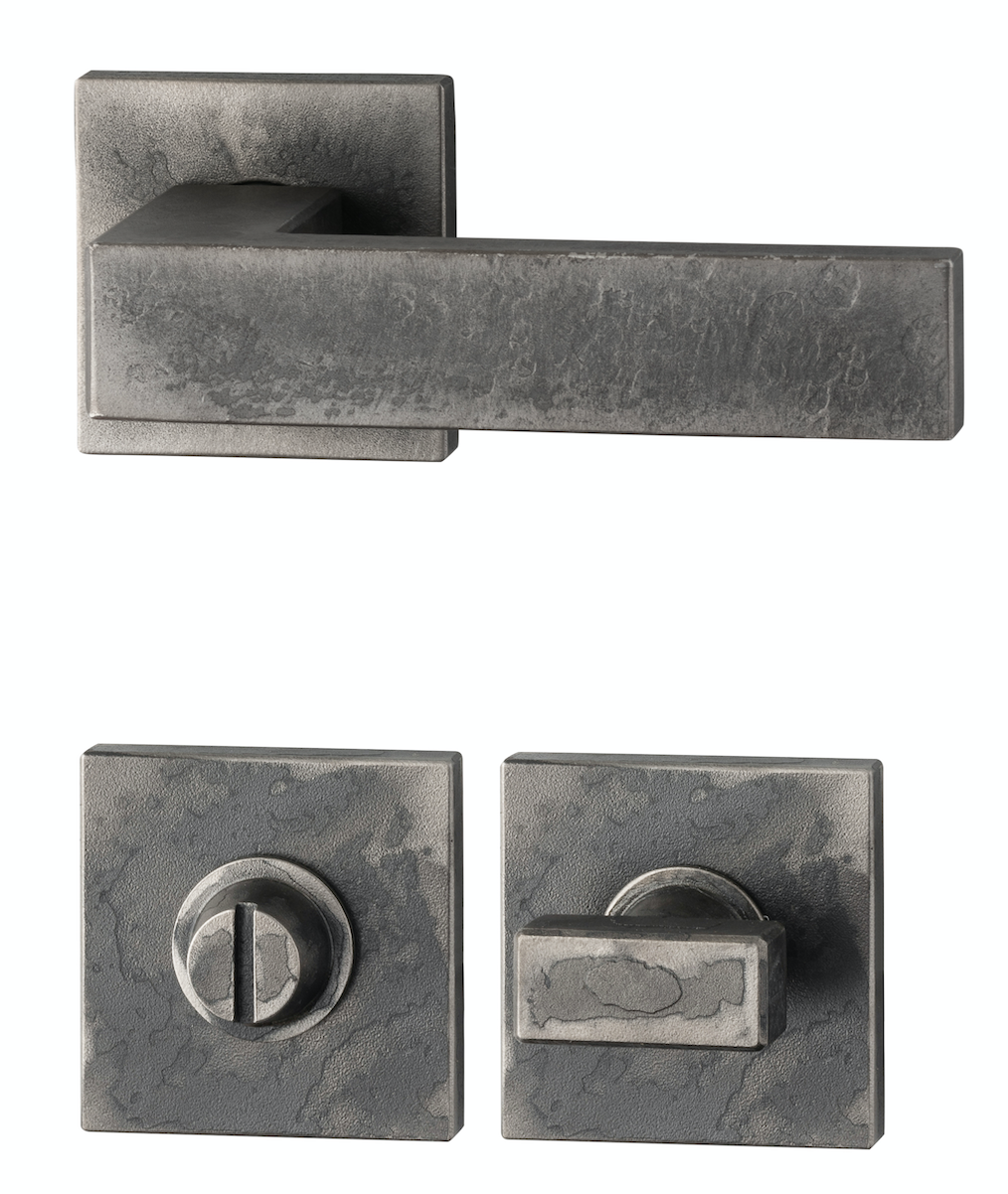HALCÖ Lech Drücker-Rosettengarnitur in Rohstahl. Diese Variante ist mit einer unsichtbaren Verschraubung. Lieferumfang : 1 Paar 120mm lange Drücker mit 25 mm Handhabe sowie einem Paar Drücker- und optional Schlüsselrosetten BB oder PZ gelocht bzw. einem Paar WC-Bad Rosetten in der gewünschten Oberfläche. Unsichtbar verschraubte quadratischen Rosetten : 54 x 54 x 7 mm ø mit einem Bohrlochabstand von 38mm Bitte wählen Sie im pulldownmenu Ihre gewünschte Schlüssel- oder WC/Bad Rosette Die gewünschte Anzahl Ihrer Garnituren können Sie oben rechts im Warenkorb einstellen. Unsichtbar verschraubt mit integrierter Hochhaltefeder, Vierkant 8 x 8 mm für 38 bis 45 mm starke Türen und einen Sechskantschlüssel.
