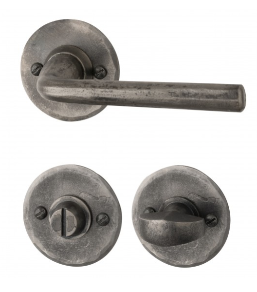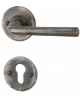 HALCÖ Obertauern Drücker-Rosettengarnitur in Rohstahl Lieferumfang : 1 Paar 120 mm lange Drücker mit 22 mm Handhabe sowie einem runden sichtbar verschraubten Paar Drücker- und optional Schlüsselrosetten BB oder PZ gelocht bzw. einem Paar WC-Bad Rosetten in der gewünschten Oberfläche. Rosetten : 60 x 3 mm mit einem Bohrlochabstand von 38mm Bitte wählen Sie im pulldownmenu Ihre gewünschte Schlüssel- oder WC/Bad Rosette oder auch ohne Schlüsselrosetten NSB Die gewünschte Anzahl Ihrer Garnituren können Sie oben rechts im Warenkorb einstellen. Da sichtbar verschraubt bekommen Sie Linsen-Senkkopf-Holzschrauben mit Schlitz geliefert, ebenso den Vierkant 8 x 8 mm für 38 bis 45 mm starke Türen und einen Sechskantschlüssel.