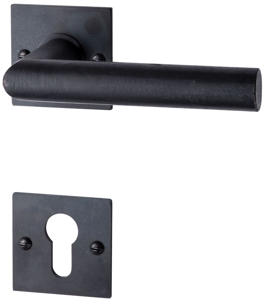 HALCÖ Drücker-Rosettengarnitur DAVOS mit klassischer 90° auf Gehrung geschweißter „Ecke“ in schwarzSTAHL mit quadratischen 44 oder auch mit runden Rosetten 46 Lieferumfang : 1 Paar 120 mm lange Drücker mit 20 mm ø Handhabe sowie 1 Paar Drückerrosetten – und optional Schlüsselrosetten BB oder PZ gelocht bzw. einem Paar WC-Bad Rosetten sichtbar verschraubte Rosetten : quadratische 44er Rosetten 52 x 52 x 3 mm oder auch mit runden 46er Rosetten mit 55 x 3 mm, Bitte wählen Sie im pulldownmenu Ihre gewünschte Variante Die gewünschte Anzahl Ihrer Garnituren können Sie oben rechts im Warenkorb einstellen. Da sichtbar verschraubt bekommen Sie Linsen-Senkkopf-Holzschrauben mit Schlitz geliefert, ebenso den Vierkant 8 x 8 mm für 38 bis 45 mm starke Türen und einen Sechskantschlüssel.