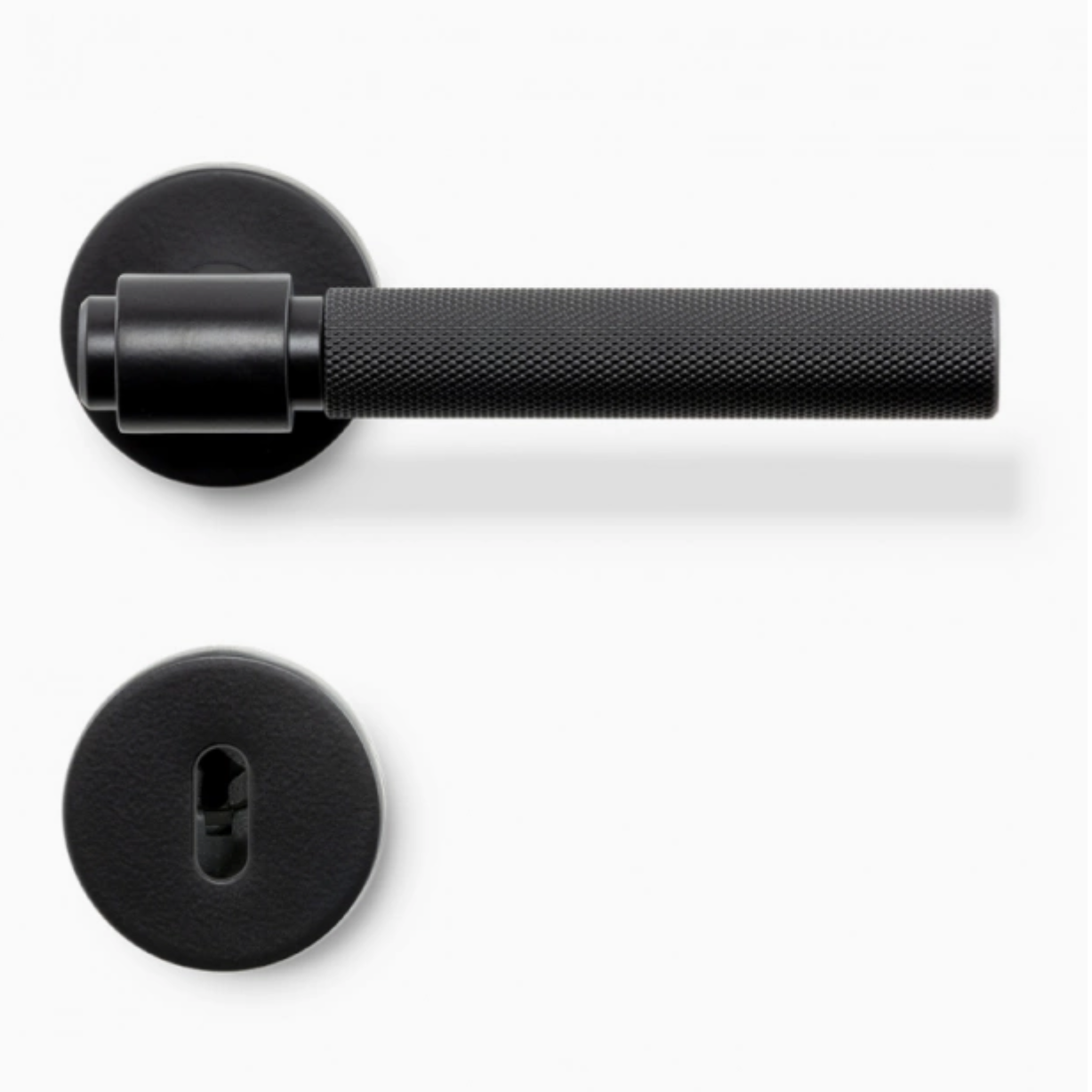 Eine moderne und angenehm zu greifende Drücker Rosetten Garnitur mit „diamond cut“ an der Handhabe in Aluminium schwarz pulverbeschichtet mit Schlüsselrosetten Buntbart BB. Profilzylinder PZ Rosetten oder WC/Bad Rosetten können separat additionell erworben werden. Die Rosetten sind unsichtbar verschraubt und für den Bohrabstand von 38 mm cc waagerecht für deutsche DIN Schlösser. Komplett mit integrierter Hochhaltefeder. Grundmaterial: Messing Die neuen Rosetten haben einen Durchmesser von 51,5 mm und sind 9 mm stark. In den Drückerrosetten ist eine hochwertige Hochhaltefeder integriert. Die gewünschte Anzahl Ihrer Beschläge können Sie im Warenkorb einstellen. Rücknahmen und Umtausch sind nicht möglich!