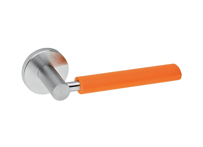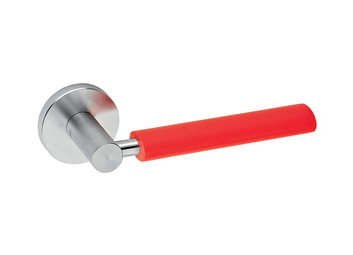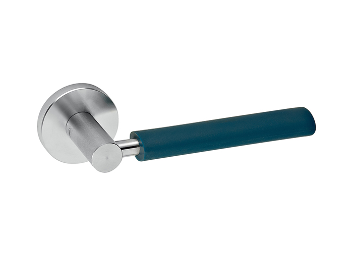 Drücker in verschiedenen Oberflächen auf runden Drückerrosetten RB08M 50 x 8 mm mit integrierter Hochhaltefeder. Bitte wählen Sie ihre gewünschte Farbkombination im pulldownmenu, hier können Sie auch die Bbt.-Buntbartrosetten bzw. Profilzylinder PZ-Rosetten oder WC/Bad Rosetten hinzufügen.