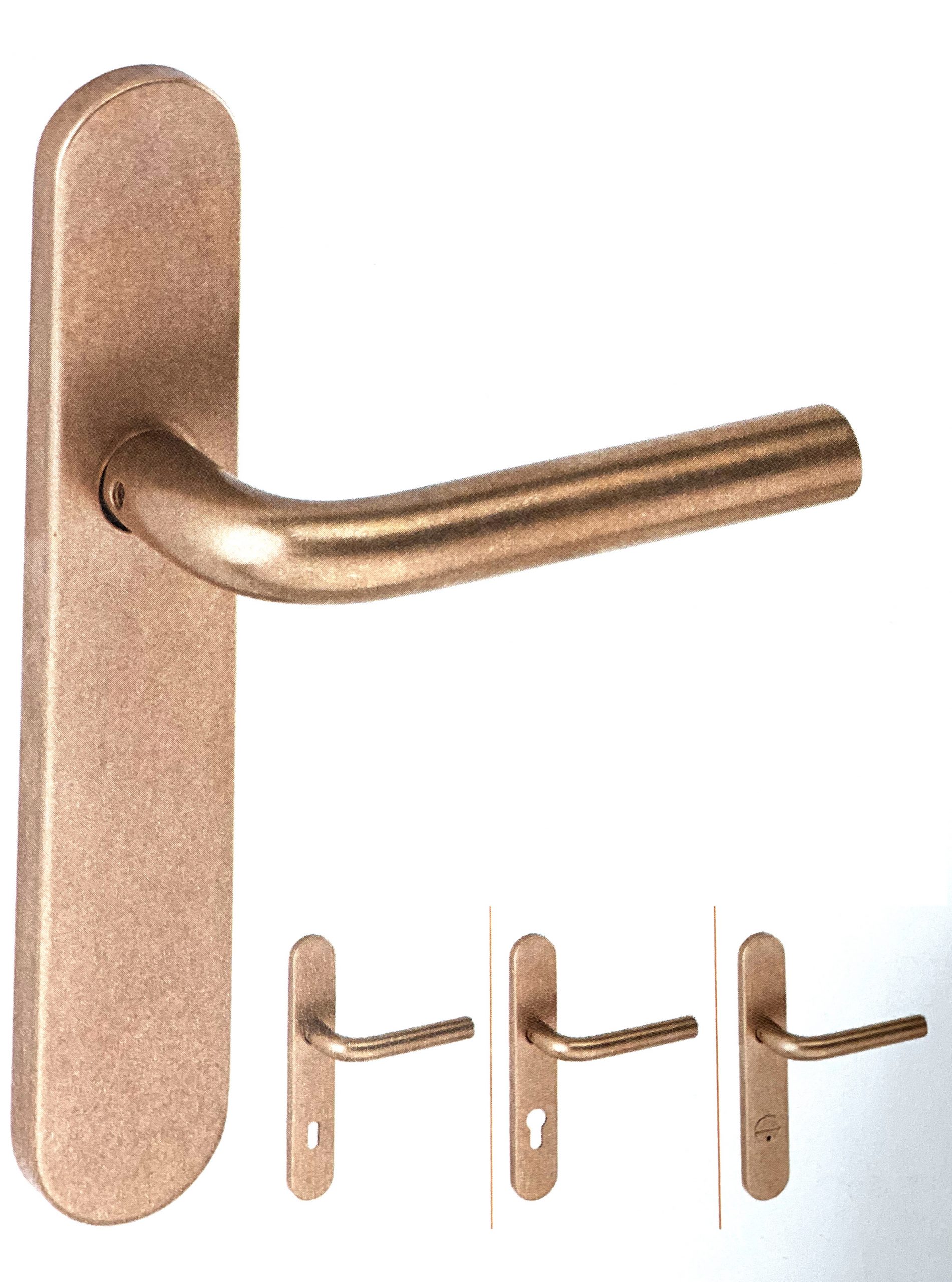 Einer der Klassiker unter den Türdrückern und sicher schon seit hundert Jahren, so oder ähnlich im Einsatz. JNF hat diesen Drücker nun in Bronze gefertigt und das klassische Material mit dieser ebenso zeitlosen Form kombiniert. Im Laufe der Zeit wird sich die natürliche Patina auf den Beschlägen verschieden stark entwickeln, ein Spiel von Form und Farbe beginnt. Die Lieferung erfolgt komplett mit Befestigungsmaterial, wir liefern den 20 mm Drücker mit den passenden ovalen / stadionförmigen 40 x 230 mm Langschildern. Im pulldownmenu finden Sie alle Varianten. BB und PZ gelochte Schilder haben einen Abstanmd von 72 mm nach DIN – Standard in Deutschland. Die WC / Schilder haben 78 mm Abstand – ebenfalls der Standard nach DIN in Deutschland. Die Lieferzeit beträgt ca. 4 – 5 Wochen nach Zahlungseingang. Umtausch oder Rücknahme sind hier nicht möglich!