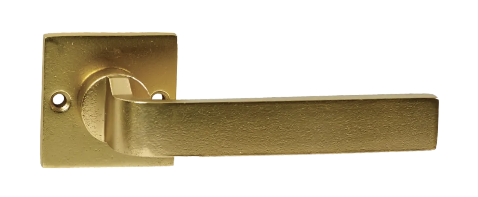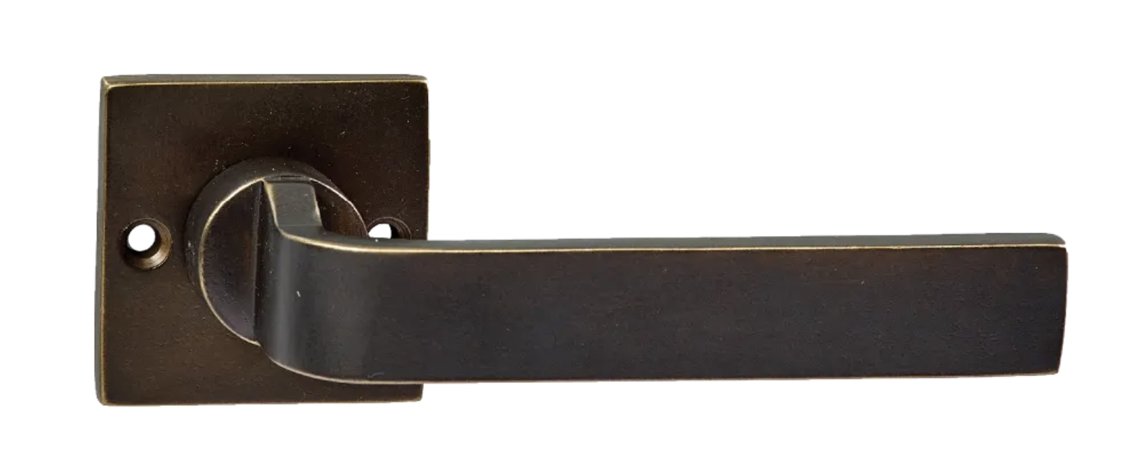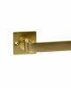 Ein wunderschöner reduzierter Drücker – fest drehbar gelagert mit integrierter Hochhalte- / Rückstellfeder. Quadratische 52 x 52 x 7,5 mm Drückerrosetten. Drückerlänge: ca. 120 mm – komplett 52,5 mm vorstehend. Bohrabstand nach DIN 38 mm. Ohne Schlüsselrosetten – diese ordern Sie bitte separat. Lieferbar in den folgenden Farben: BK black/schwarz AB aged bronze GA aged gold OS old silver Die Lieferung erfolgt komplett 1 Paar Drücker auf Rosetten mit Befestigungsmaterial. Treffen Sie hier Ihre Auswahl im pulldownmenu