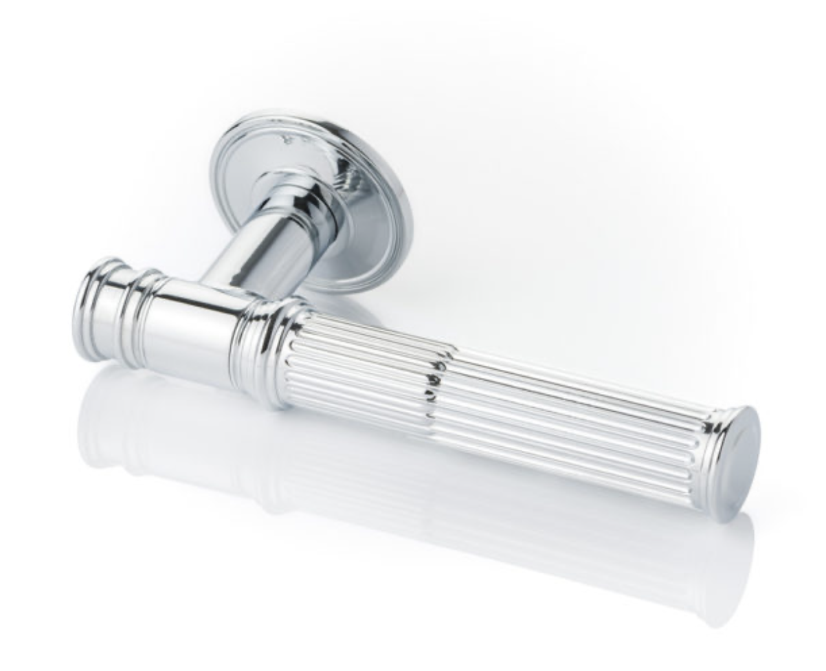 Joseph Giles LV1190 HAMILTON Türdrücker aus massivem Messing mit einzigartigem Innenrosettensystem PRODUKTGESCHICHTE Die Details im Design dieses Türdrückers wurden von klassischen Säulen aus der korinthischen und ionischen Ordnung inspiriert. Säulen sind in der antiken griechischen Architektur stark vertreten, und obwohl sie sicherlich eine strukturelle Nutzung hatten, hatten sie auch eine bedeutende dekorative – und kulturelle Bedeutung. Die Flöten und Details an beiden Enden des Griffs sind nicht unähnlich denen, die an den Säulen zu sehen sind, die die Türverkleidungen im Great Room in Spencer House, St. James‘ Platz. Für mehr Interesse wurde die entzückende, teilweise gefüllte geriffelte Dekoration eingeführt. Ein etwas selteneres Detail, ein Beispiel, das in London zu finden ist, ist die ionischen Säulen vor der St. Paul’s Cathedral. Es handelt sich bei allen Varianten um Sonderanfertigungen! Umtausch oder Rücknahme sind ausgeschlossen. Nach Ihrem Einkauf senden wir Ihnen eine dementsprechende Vereinbarung zu. Bitte haben Sie dafür Verständnis, alle Garnituren werden von Hand gefertigt und sind Unikate für Sie gemacht. ACHTUNG: Die Schlüssel- und WC Rosetten sind kleiner als die Drückerrosetten. Im pulldownmenu finden Sie die Standardoberflächen MPC Chrom poliert, Messing poliert unlackiert MPu und Nickel poliert MPN Ebenso finden Sie hier die Variante DunkelBronze gewachst DBZW und Messing antik gewachst MABW Bitte wählen Sie auch die passenden Schlüssel- oder WC/Bad Rosetten im pulldown menü