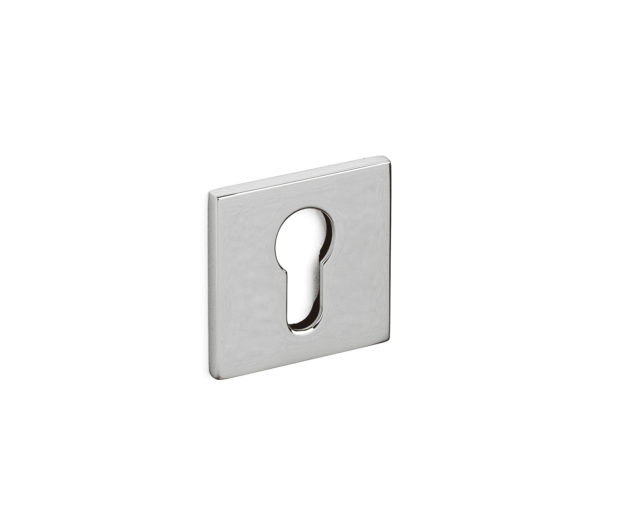 LIVING Drücker-Rosetten-Garnitur mit 51 x 51 x 5 mm flachen Rosetten Hersteller : OLIVARI Design : Dominique Perrault Der Griff einer Tür muss einfach sein und dem Wesentlichen entsprechen. Sein Ausdruck ist offensichtlich, auf den ersten Blick verständlich. Für diese Zusammenarbeit mit Olivari wollte Dominique Perrault Formen schaffen, die auf das Wesentliche reduziert sind: eine Linie im Raum. Die Lieferung der Garnitur erfolgt komplett mit Montagematerial (Durchgangsschrauben und Bohrschablone sowie Sechkantschlüssel) für eine Tür Drückerrosetten mit integrierter Hochhaltefeder, Schlüssel- oder WC/Bad-Rosetten 51 x 51 x 5 mm, auf Wunsch auch ohne Schlüsselrosetten. Das Photo zeigt die Variante in Chrom poliert. Bitte wählen Sie im pulldownmenu Ihre Kombination aus Oberfläche und Lochung. Bohrabstand nach DIN : 38 mm