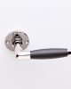TON/E-46 Art dèco Rosettengarnitur Hersteller: SAAM & BATZ Ein Klassiker mit wunderschöner schwarzer Ebenholzhandhabe und sichtbar verschraubten 50 x 7 mm Rosetten. Der Bohrabstand ist nach DIN 38 mm und für Durchgangsverschraubung gemacht. Sie bekommen im gleichen Design Möbelgriffe, Kreuz-Möbelknöpfe, Haustür-Stoßgriffe, Fensterfeststeller usw……. natürlich auch Dreh-Kipp Fenstergriffe mit normaler ovaler Unterkonstruktion und auch abschließbar. Sprechen Sie uns bitte an, wenn Sie Lösungsvorschläge brauchen. Lieferumfang: 1 Paar Drücker, 1 Paar Drückerrosetten und optional 1 Paar Schlüssel oder WC/Bad-Rosetten, komplett mit Befestigungsmaterial und Sechskantschlüssel.