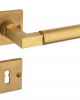BAUHAUS Drücker-Rosetten-Garnitur im Design nach Adolf Meyer im Privataltelier von Walter Gropius 1922 oder 1923 gezeichnet. Diese Variante mit der sichtbaren Verschraubung ist der wirkliche Klassiker unter den „Gropius“-Klinken. Hier bieten wir Ihnen die Garnitur in der außergewöhnlichen Oberfläche: Messing Naturroh gerommelt. Lieferumfang : 1 Paar 115 mm lange Drücker mit 20 mm runder Handhabe sowie einem Paar Drücker- und Schlüsselrosetten Buntbart BB oder Profilzylinder PZ gelocht bzw. einem Paar WC-Bad Rosetten in der gewünschten Oberfläche. Rosetten : 52 x 52 x 7 mm Bitte wählen Sie im pulldownmenu Ihre gewünschte Schlüssel- oder WC/Bad Rosette Die gewünschte Anzahl Ihrer Garnituren können Sie im Warenkorb einstellen. Da sichtbar verschraubt bekommen Sie einen kompletten Satz Durchgangsschrauben und alternativ Linsen-Senkkopf-Holzschrauben mit Schlitz geliefert, ebenso den Vierkant 8 x 8 mm für 38 bis 45 mm starke Türen und einen Sechskantschlüssel.