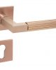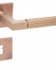 S & B BAUHAUS Drücker-Rosetten-Garnitur im Design nach Walter Gropius und Adolf Meyer aus den Jahren 1922 und 1923 und aufgepeppt um die zylindrische Handhabe im LINEAR cut Design. Drückerrosetten mit integrierter Hochhaltefeder und sehr flach: 52 x 52 x 5 mm ! Lieferbar in Messing matt PVD beschichtet MM/PVD oder schwarz matt PVD beschichtet SM/PVD Bitte wählen Sie im pulldownmenu Ihre gewünschte Oberfläche und Schlüssellochung Die gewünschte Anzahl Ihrer Beschläge können Sie im Warenkorb einstellen. Lieferumfang : 1 Paar 115 mm Drücker mit 1 Paar Drücker-Rosetten 52 x 52 x 5 mm mit integrierter Hochhaltefeder – NSB ohne Schlüsselrosetten, mit Schlüsselrosetten Buntbart BB, Profilzylinder PZ oder mit WC-Badrosetten. Komplett mit Befestigungsmaterial für TS 38 – 45 mm Auf Wunsch sind Farbkombinationen (z.B. Nickel polierter Drückerhals und schwarz matte Handhabe) als Sonderanfertigung ohne Umtausch/Rücknahme machbar – bitte anfragen!