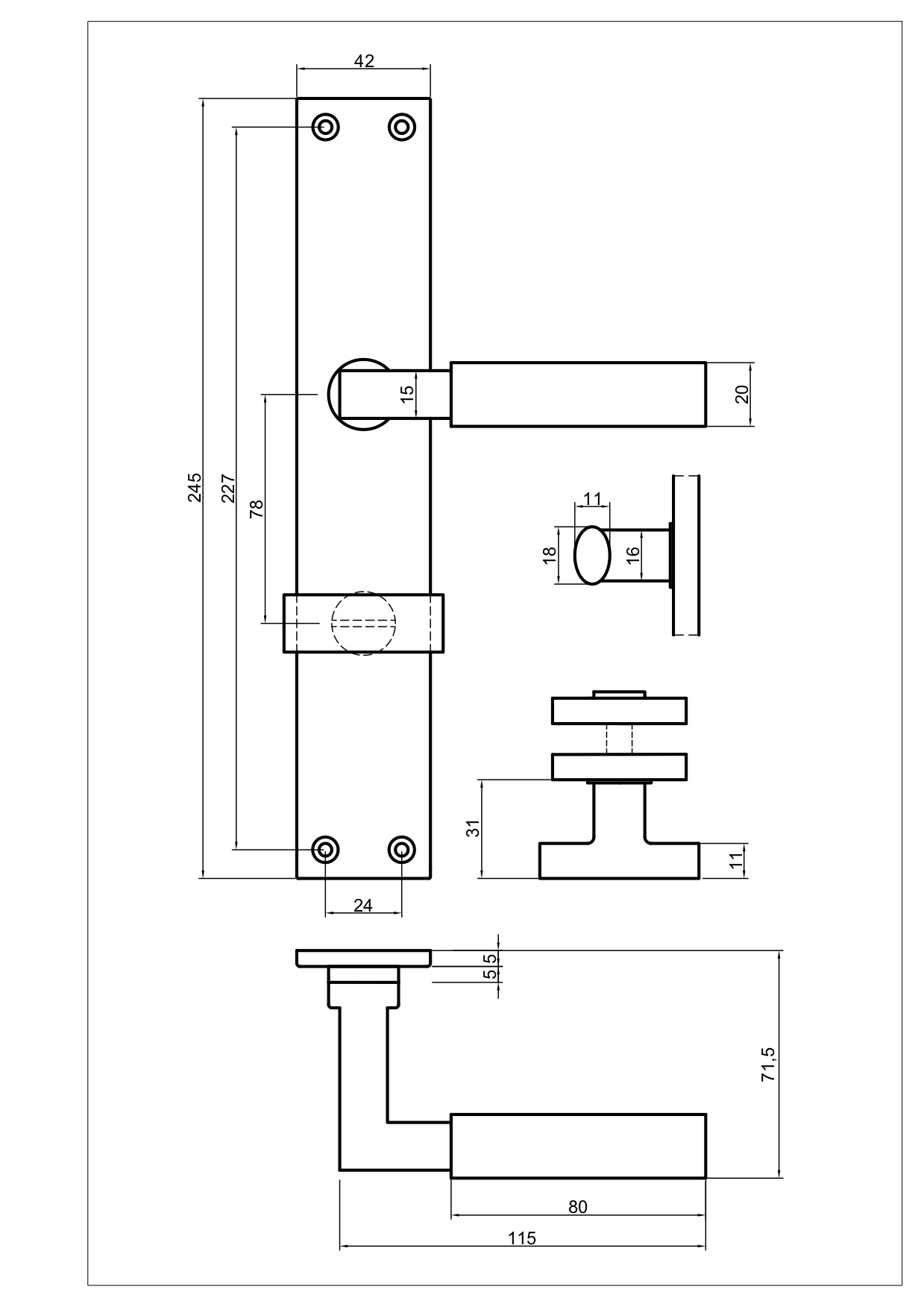 Kategorien: Auf rechteckigem Langschild sichtbar verschraubt, Beschläge für Zimmertüren